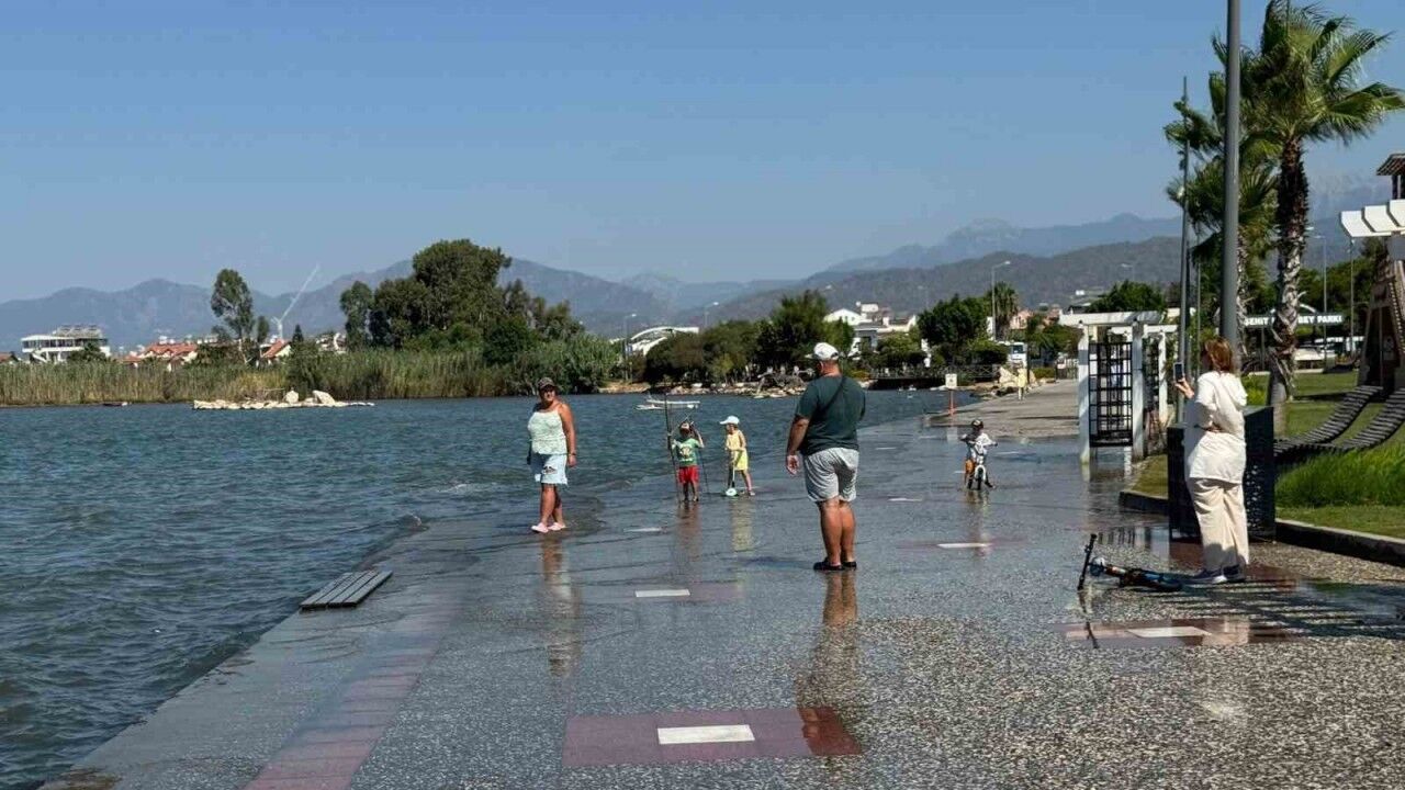 Fethiye’de meydana gelen gelgit olayı nedeniyle deniz suyu yükselerek Şehit Fethi Bey Parkı’nda kordona kadar ulaştı.