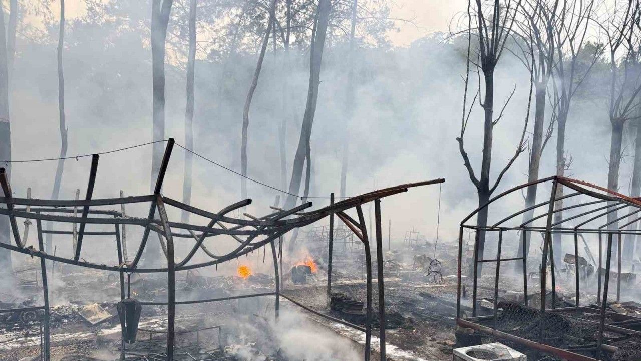 Muğla’nın Fethiye ilçesinde karavan ve bungalovların bulunduğu alanda yangın çıktı. Yangın ekipler tarafından kontrol altına alınırken, onlarca karavan ve bungalov küle döndü.