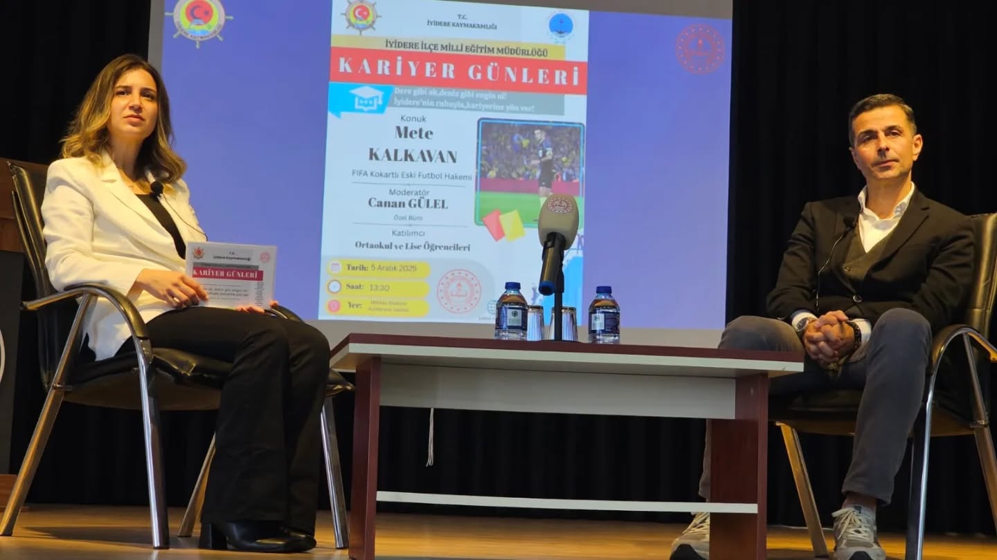 İyidere Kaymakamlığının himayelerinde, Belediyenin destekleriyle ve İlçe Millî Eğitim Müdürlüğü koordinesinde yürütülen “Kariyer Günleri 2025-2026” etkinlikleri kapsamında, öğrenciler İyidere'den yetişen farklı meslek alanlarında başarıya ulaşmış isimlerle buluşturuluyor