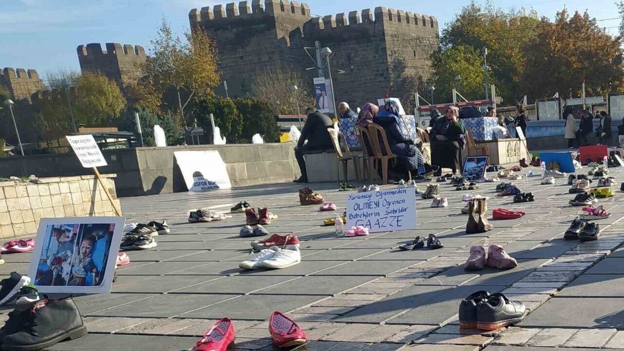 7 Ekim’den bu yana Gazze’de devam eden saldırılarda hayatını kaybeden binlerce çocuktan geriye kalan mirası sembolize eden çocuk ayakkabıları, Kayserili çocuklar tarafından meydana serilerek basın açıklaması yapıldı.