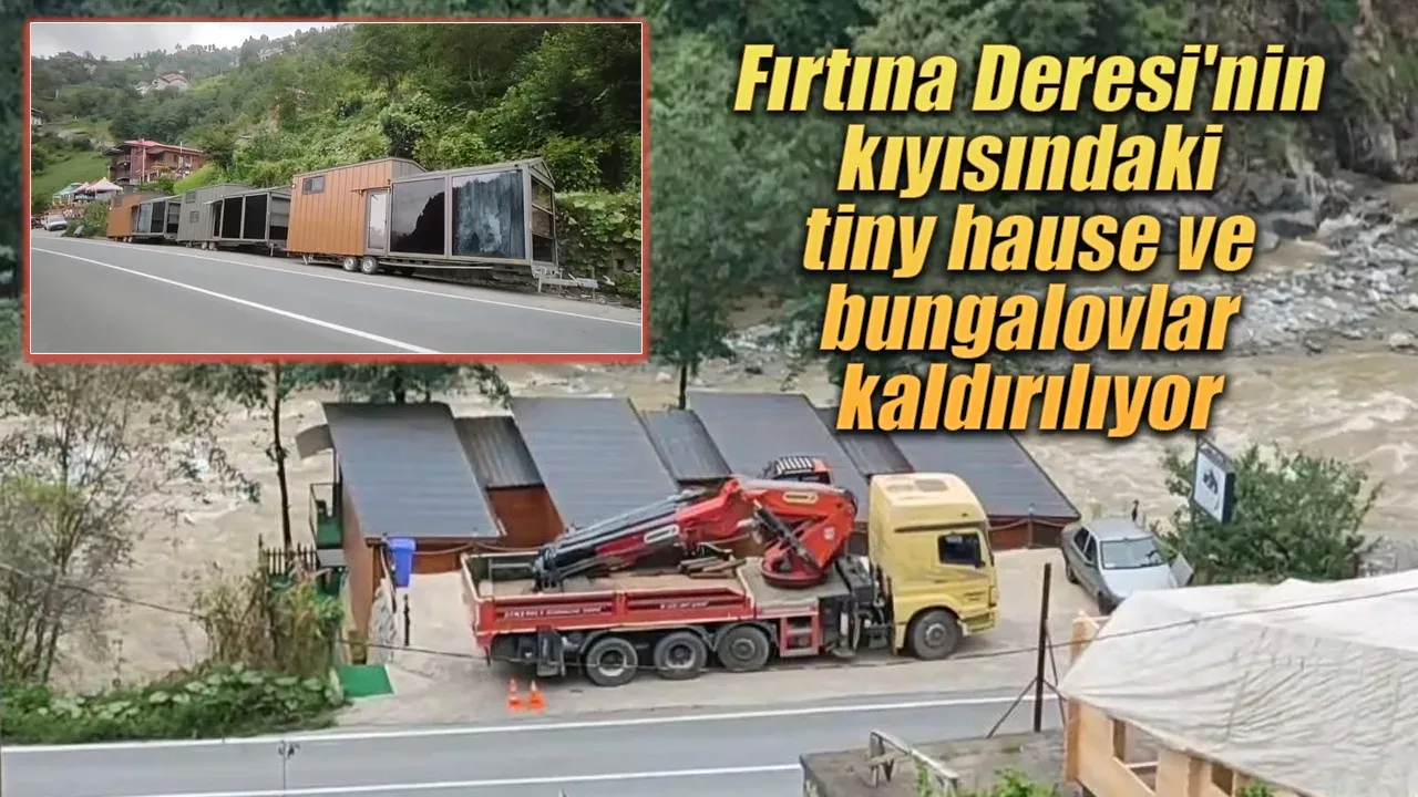 Rize’de geçtiğimiz hafta sonu etkili olan şiddetli yağışlar sonrasında Fırtına Vadisi’nde etkili olan sel ve heyelanların ardından Fırtına Deresi’nin kıyısındaki bungalovlar ve tiny hause şeklindeki yapılar tek tek kaldırılmaya başlandı.