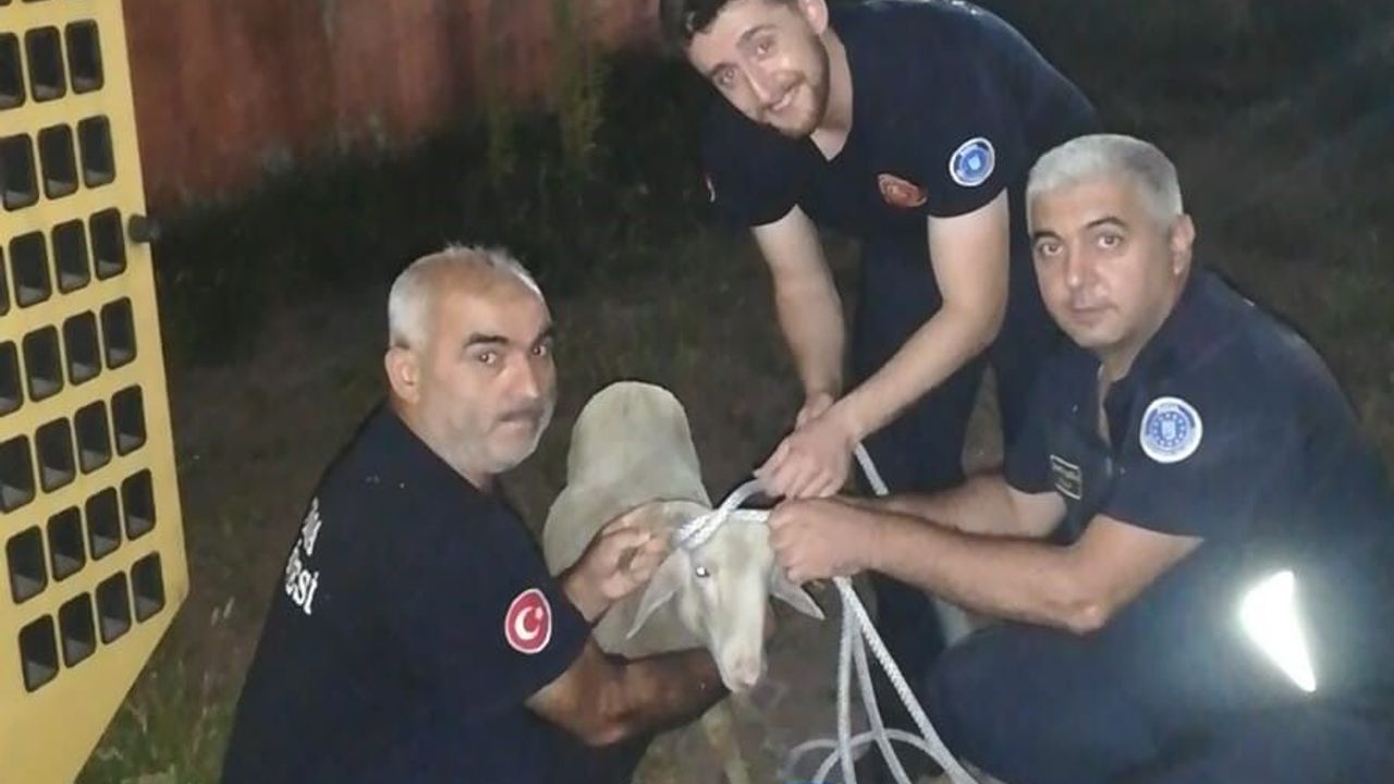 Bursa’nın İnegöl ilçesinde foseptik çukuruna düşen koyun, itfaiye ekiplerince kurtarıldı.