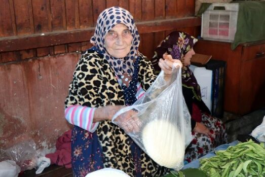 Ayşe Uslu, Karadeniz'in zorlu coğrafyasında elde ettiği ürünleri aynı tazelik ve doğallıkla gittiği pazarlarda satarak geçimini sağlıyor.