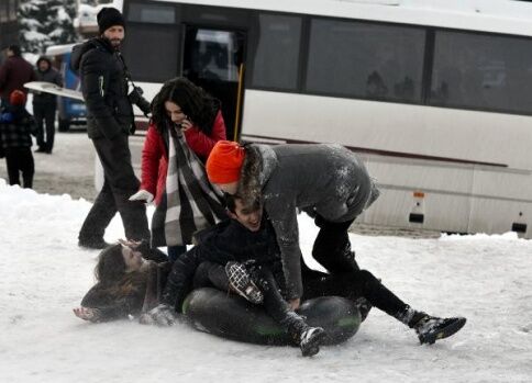 Ayder Yaylası'nın vazgeçilmez kış eğlencesi olan kayak ise bu yıl da renkli görüntülerle başladı. Otomobil şambrelleri, branda ve naylonlarla kayak yapanların bazıları takla attı, kimileri bekleyen vatandaşlara çarptı. Hızını alamayanlar ise çıktığı pist dışındaki park halinde olan otomobillere çarptı. Kayak sırasında yaralanan 3 kişiye sağlık ekipleri müdahale etti.