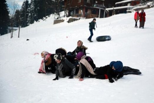 RİZE’nin Çamlıhemşin ilçesi Ayder Yaylası, yağan karla beyaza büründü. Kar eğlencelerinin başladığı yaylada, otomobil şambrelleri, branda ve naylonlarla kaymaya çalışanlar renkli görüntüler oluşturdu.