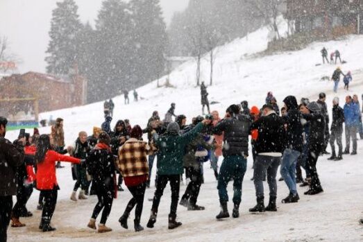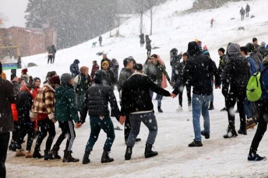 Yeni yıl tatilini yaylada geçirenler, kar sürprizi ile karşılaştı. Tatilciler kar yağışı altında yürüyüş yaptı, tulum ezgileri ile horon oynayarak, alkışla tempo tuttu. Karın keyfini çıkaran çocuklar da kardan adam yaptı.
