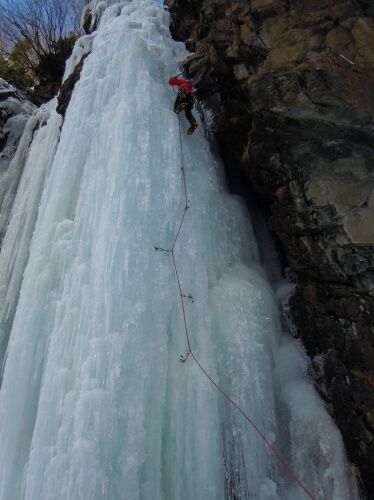 Rize’nin Çamlıhemşin ilçesindeki Çat Vadisi’ndeki donmuş şelalelere dağcılar tarafından tırmanış gerçekleştirildi.
