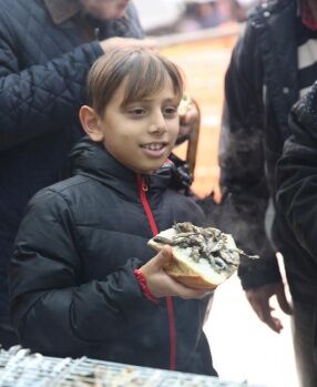 RİZE'de geleneksel hamsi şenliğinde, 2 ton hamsi, 2 saat içerisinde tüketildi. Şenlikteki yarışmada, 1 dakikada içi hamsi dolu ekmeği yiyip bitiren Kastamonulu Fatih Gürleyen birinci oldu.