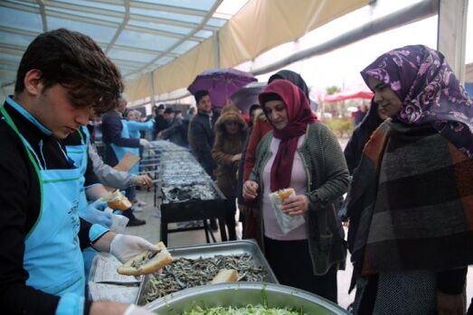 Rize Belediyesi tarafından bu yıl 4'üncüsü düzenlenen hamsi şenliğine katılım yoğun oldu. Sağanak yağışa rağmen sahildeki alanı dolduran vatandaşlar, öğle saatlerinde başlayan şenlikte, hamsi ikramının yapıldığı mangalların önünde kuyruk oluşturdu. Şenlikte 2 ton hamsi, 2 saat içerisinde tüketildi.
