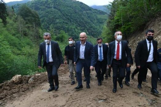 Ulaştırma ve Altyapı Bakanı Adil Karaismailoğlu yerinde incelemelerde bulunmak üzere İkizdere'deki taş ocağı alanına gitti.