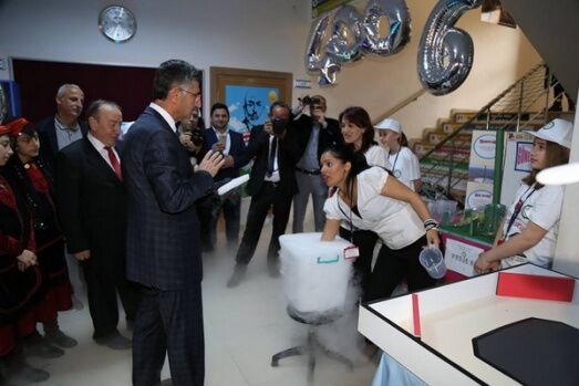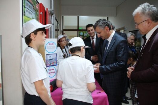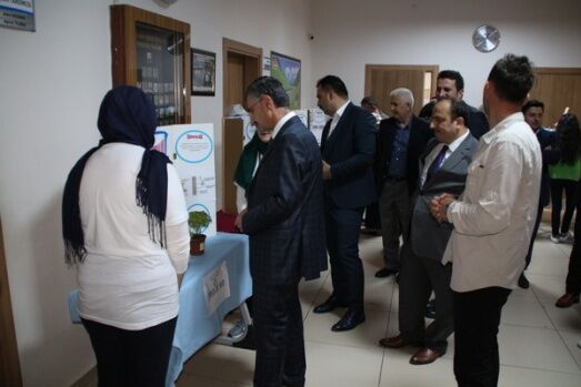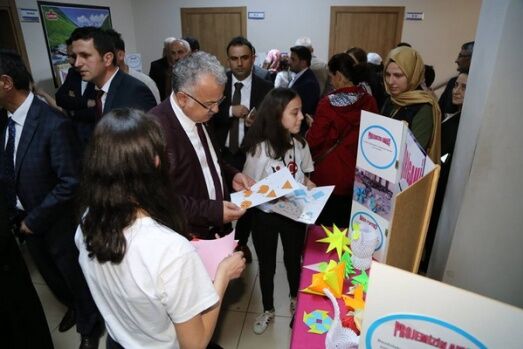 Proje koordinatörü Ayşegül Demir gözetiminde görevli öğretmen ve öğrencilerin hazırladığı projeleri inceleyen davetliler öğrenci ve öğretmenlerden bilgiler aldılar.