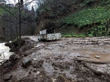 Rize'de sağanak yağmur heyelana neden oldu