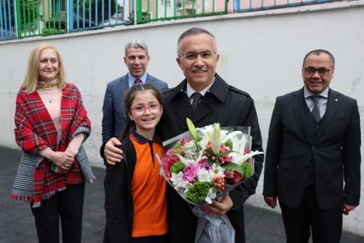 Fırsat buldukça Atmacalarım diye hitap ettiği öğrencilerin davetini geri çevirmeyen Rize Valisi Çeber, eşi Neslihan Ayan Çeber ile birlikte kendilerini okullarına davet eden İstiklal İlkokulu 4/B sınıfı öğrencisi Fatma Sena Öksüz’ü kırmayarak okula ziyarette bulundu.