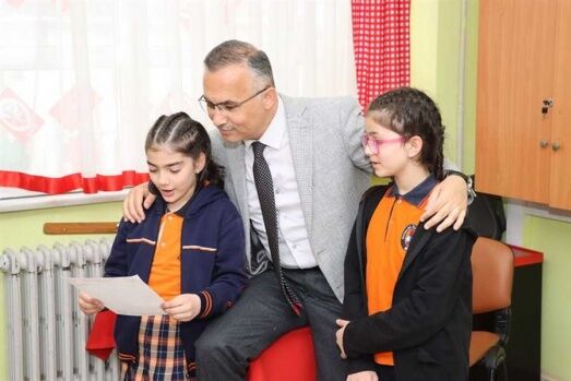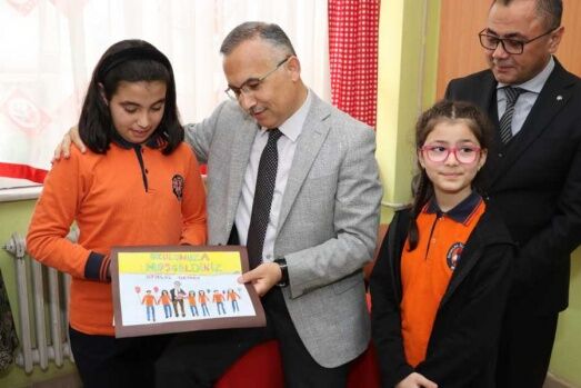 Öğrenciler Vali Çeber’in ziyaretinden çok mutlu olduklarını dile getirerek kedisi için çizdikleri resimleri hediye edip yazdıkları şiirleri okudular.