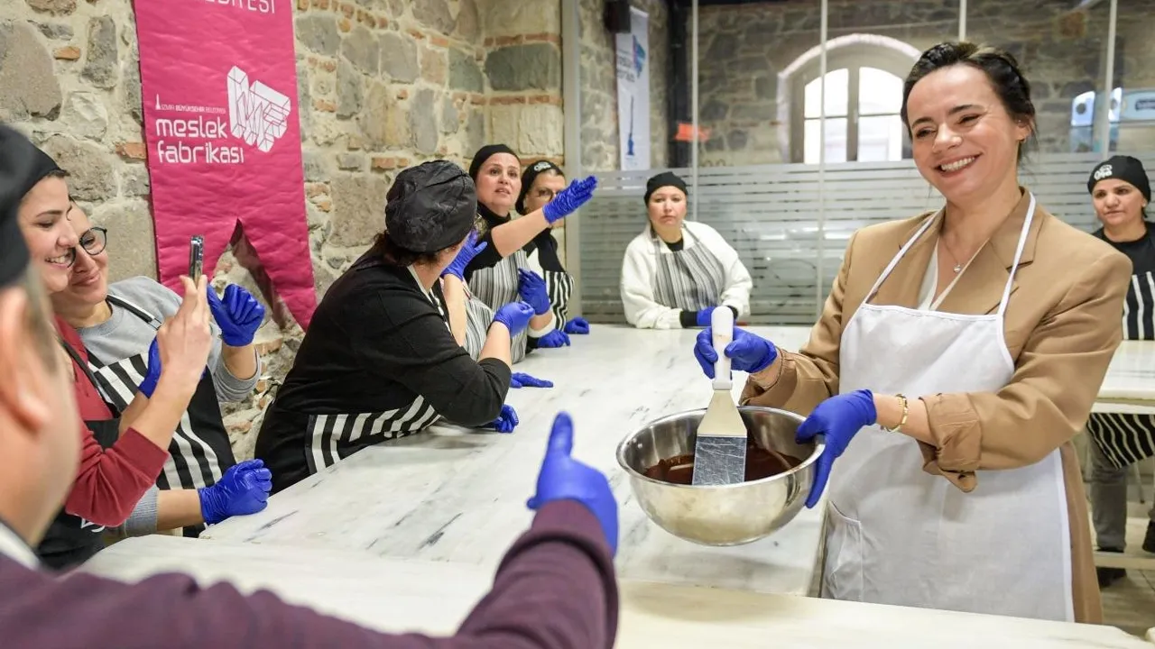 İzmir Büyükşehir Belediyesi Meslek Fabrikası’nın sağır ve işitme engellilere yönelik açtığı pastacı çıraklığı kursuna İzmir Büyükşehir Belediye Başkanı Dr. Cemil Tugay’ın eşi Öznur Tugay da katıldı. Öznur Tugay ve Fransız Şef Joelle Cam eşliğinde kursiyerler, işaret dili çevirmenleri eşliğinde pastacılığın inceliklerini öğrendi.İZMİR (İGFA) - İzmir’de faaliyet gösteren İzmir Sağırları Koruma ve Kalkındırma Derneği, Karşıyaka Sağırlar Derneği ve Bornova Sessizler Derneği üyeleri, İzmir Büyükşehir Belediyesi Meslek Fabrikası’nda sağır ve işitme engellilere yönelik açılan pastacı çırağı kursuna başladı.