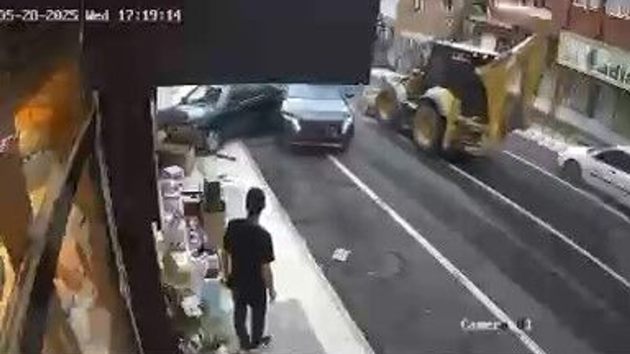 Hatay’da freni arızalanan kepçe sürücüsünün kontrolünden çıkarak park halindeki ve trafikteki 4 araca çarptı. Kepçe sürücüsü hafif şekilde yaralanırken, kaza anı kameraya yansıdı.