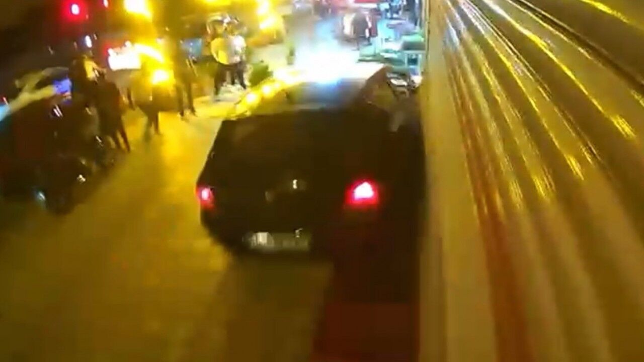 Kahramanmaraş’ta el freni boşalan otomobilin iş yerine çarparak durabildiği anlar güvenlik kamerasına yansıdı.