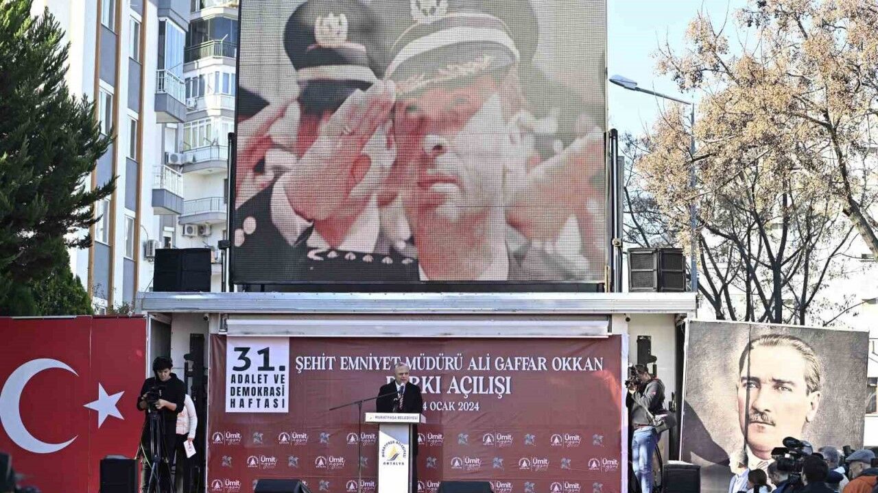 Muratpaşa Belediye Başkanı Ümit Uysal, uğradığı suikast sonucu hayatını kaybeden eski Diyarbakır Emniyet Müdürü Ali Gaffar Okkan’ın adını taşıyan parkın açılışında “Türkiye’yi düşünecek, Türkiye’yle yaşayacak, Türkiye’nin geleceğine, bütünlüğüne, beraberliğine odaklanacak duyarlılıkta insanlara çok ihtiyacımız var” dedi.