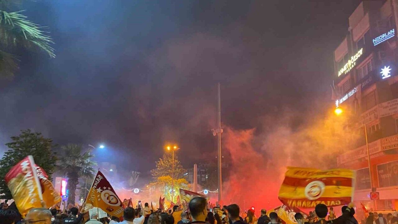 Süper Lig’de Kayserispor’u 3-0 mağlup eden Galatasaray 25. şampiyonluğunu ilan etti. Maçın bitiş düdüğüyle birlikte Atatürk Kent Meydanı’na akın eden sarı-kırmızılı taraftarlar şampiyonluğu doyasıya kutladı. Ellerindeki meşaleler ve Galatasaray bayraklarıyla marşlar söyleyen taraftarlar, meydanı bayram havasına çevirdi.