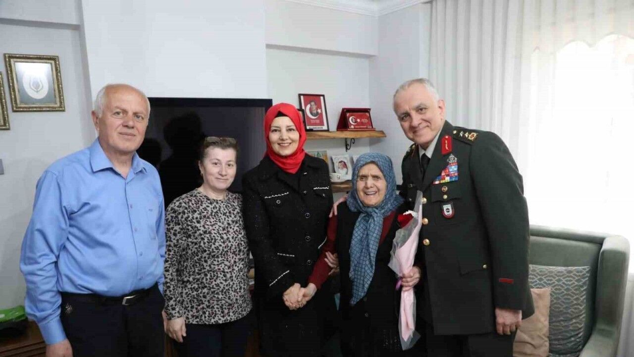 Samsun Garnizon Komutanı Tümgeneral Davut Ala, şehit annesi Bedriye Hamlı’yı evinde ziyaret ederek, Anneler Günü’nü kutladı.