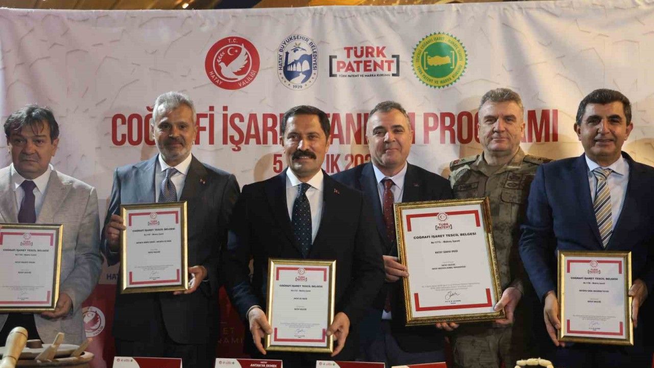 Tarihte farklı medeniyetlere ev sahipliği yapan gastronomi şehri Hatay’da damak çatlatan 6 lezzet ve Hatay Sarısı İpeği, Türk Patent Enstitüsü tarafından coğrafi işaret verilerek tescillendi. Hatay’da 5 Şubat 2023 tarihinde 25 olan coğrafi işaretli tescilli ürün sayısı, yapılan çalışmalarla 57’ye çıkarıldı.