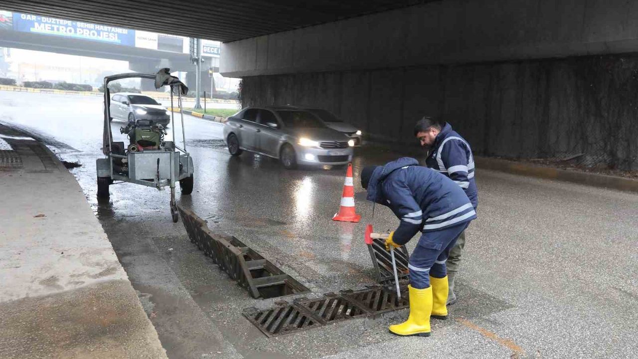 Büyükşehir Belediyesine bağlı ekipler, şehir merkezinde ulaşımın aksamaması ve su baskınlarının önlenmesi amacıyla riskli olarak değerlendirilen noktalarda tedbirlerini artırdı. Sahada mazgal temizliği, yağmursuyu tahliye ve yol güvenliği çalışmaları eş zamanlı olarak sürdürülüyor.
