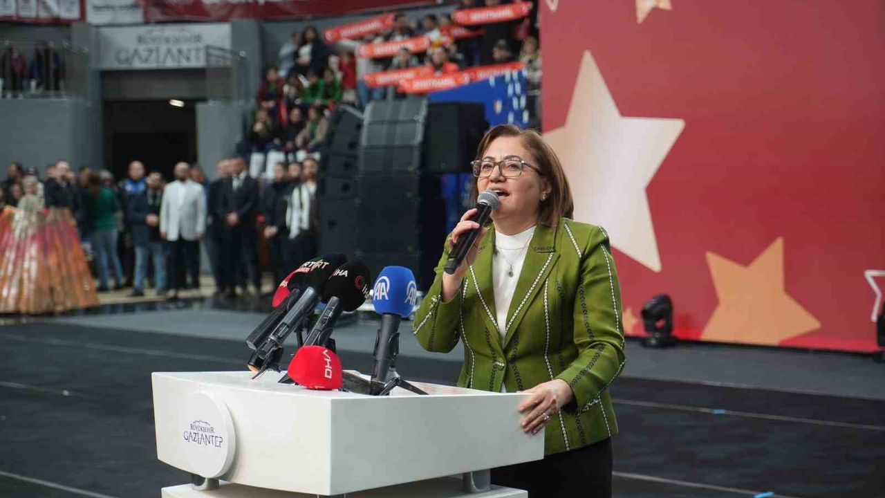 Törene katılan protokolü selamlayan Gaziantep Büyükşehir Belediye Başkanı Fatma Şahin, 'Biz herhangi bir şehir değiliz. Valimizle, bakanlarımızla, milletvekillerimizle Gaziantep Modeli çalışıyor. Bu model birlikte rahmet var, kuvvet var modeli. Bu yıldızlarımız herhangi bir yıldız değil kutup yıldızı. Kutup yıldızı yön gösterir, pusuladır. Tarihtir, imandır, medeniyettir. Saygıdeğer Cumhurbaşkanımızın verdiği güçle, 1994 ruhu bu şehirde çalışıyor. Karıncalar gibi çalışıp dev eserler üretiyoruz. Burada bu şehirde partiniz ne olursa olsun 'Söz konusu vatansa parti teferruattır' diyen bir şehiriz' ifadelerini kullandı.
