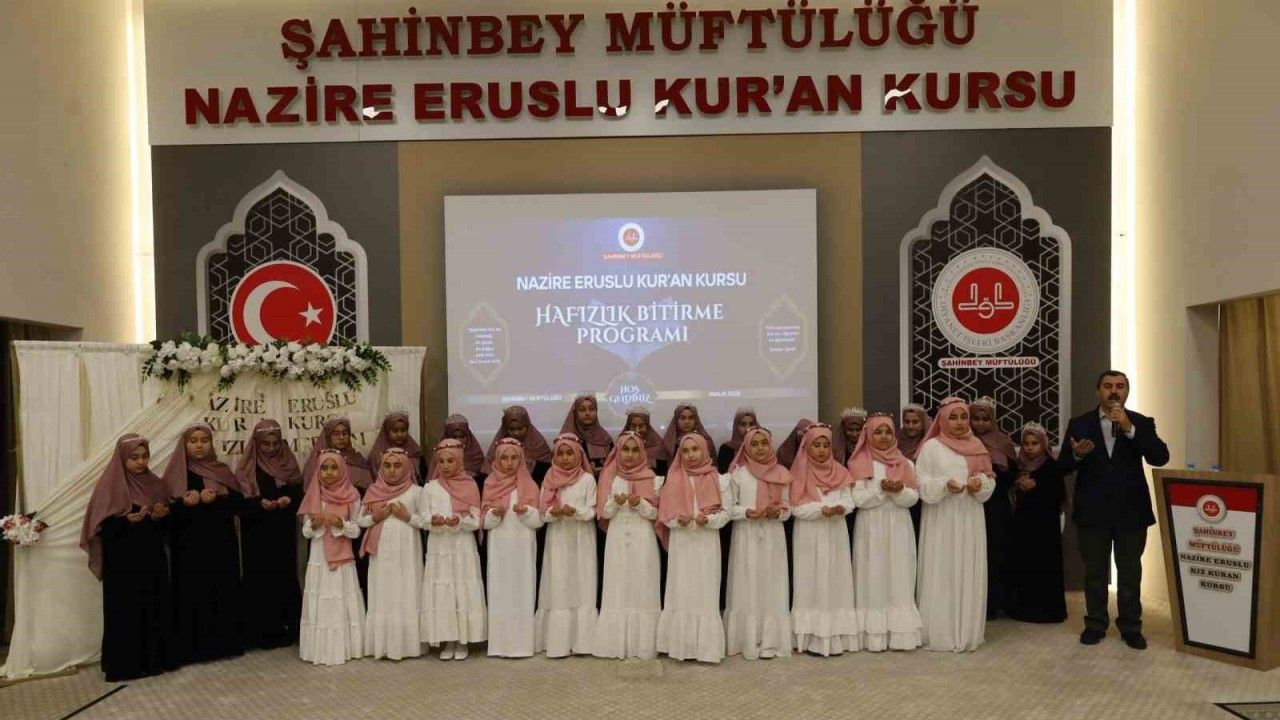 Şahinbey İlçe Müftüsü Mehmet Arslaner de, "Hafızlığı bitiren öğrencilerimizin mutluluğuna ortak olduk. Nazire Eruslu Kur’an kursumuzda hafızlığını bitiren 16 öğrencimiz ile hazırlık eğitimini tamamlayıp hafızlık eğitimine başlayan 11 öğrencimiz için program düzenledik. Öğrencilerimize başarılar diliyor, onlara emek veren çok kıymetli kurs idaremize ve Kur’an kursu öğreticilerimize teşekkür ediyoruz" diye konuştu.