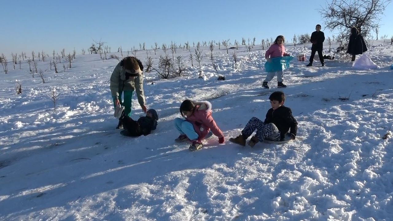 Tepsi, poşet ve leğenlerle kayarak çok eğlendiklerini belirten çocuklar, hep beraber eğlenmenin ve birlikte kaymanın çok keyifli olduğunu dile getirdiler.