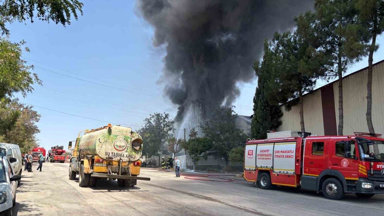 Gaziantep’te bir halı fabrikasında çıkan yangına itfaiye ekibi müdahale ediyor.