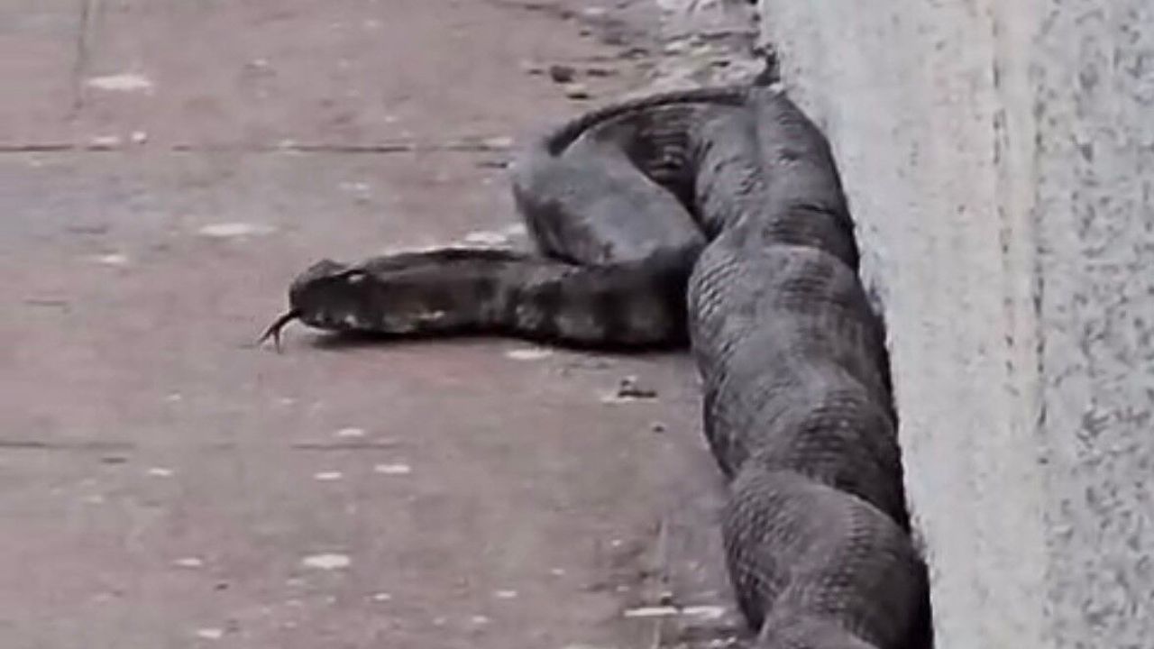 Gaziantep’in Şahinbey ilçesinde bir sitede ortaya çıkan yılan, mahalle sakinlerinde paniğe neden oldu.