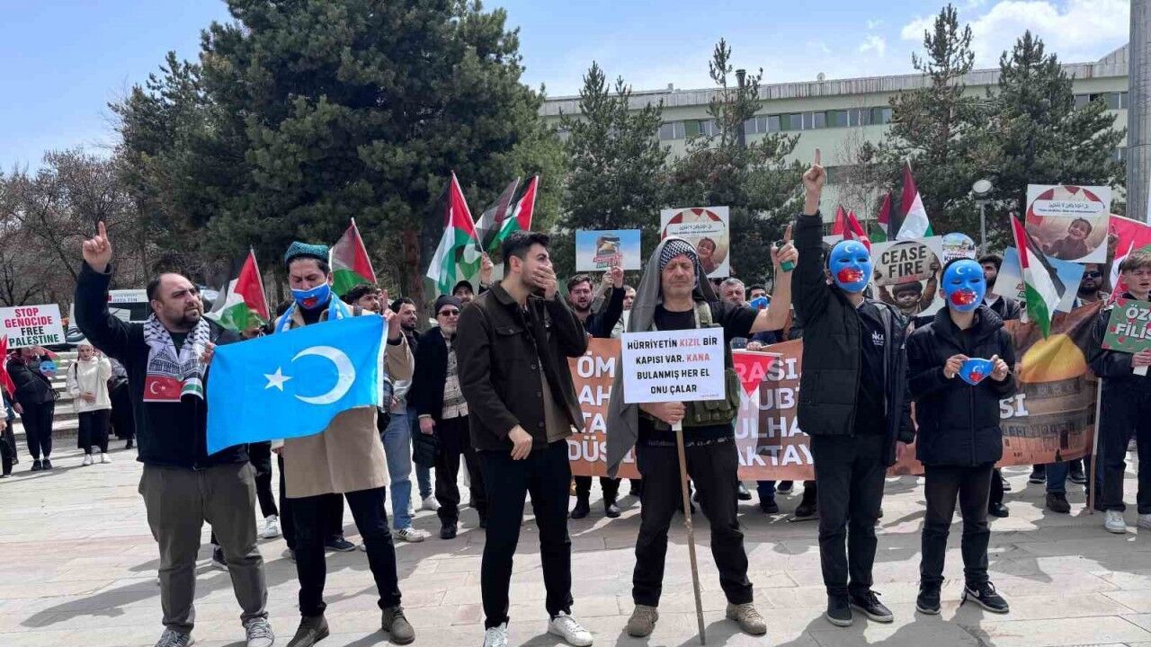 Erzurum’da İnsan Hak ve Hürriyetleri İnsani Yardım Derneği tarafından düzenlenen programda; Üniversitesi Camisi önünde buluşan öğrenciler ve katılımcılar yürüyüş yaptı, İsrail’in Gazze’ye yönelik saldırılarını protesto ve Doğu Türkistan’a destek verdiler.