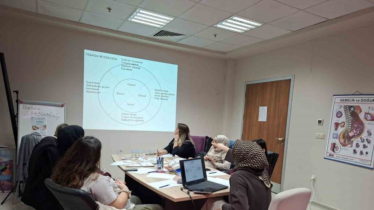 Düzce İl Sağlık Müdürlüğü tarafından anne adaylarının güvenli, kaliteli gebelik ve doğum sonu bakım hizmetlerine ulaşmalarını sağlamak için yapılan gebe okulunda eğitimler bütün hızıyla devam ediyor. Okulda anne adaylarının yanı sıra baba adayları da eğitim alıyor.