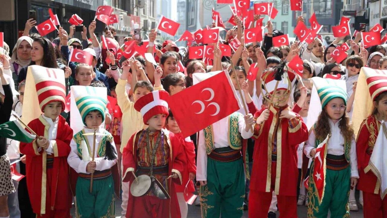 Gebze’de 23 Nisan etkinliklerinde düzenlenen kortej yürüyüşü renkli anlara sahne oldu. Çocuklar ellerinde Türk bayrakları ile gönüllerince eğlendi.