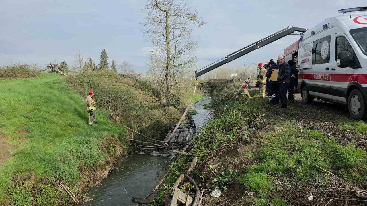 DÜZCE (İHA) - Düzce'de gece saatlerinde dereye yuvarlandığı tahmin edilen otomobil, sabah saatlerinde fark edildi. Durumu fark eden vatandaşların ihbarı üzerine olay yerine giden Düzce Belediyesi İtfaiye Müdürlüğü ekipleri araçta birilerinin olup olmadığını kontrol etti.