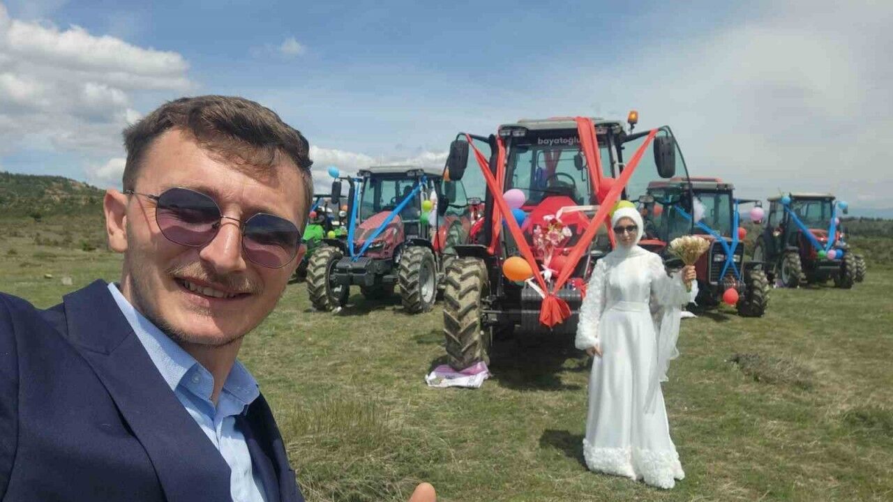 Kastamonu’nun Taşköprü ilçesine bağlı Afşar köyünde çiftçilik yapan Yusuf Koca ve Elifnur Eroğlu, düzenlenen düğün merasimiyle dünya evine girdi. Çift düğün öncesi, düğün arabası olarak traktörlerini kullanmaya karar verdi. Traktörü süsleyen çift, daha sonra köyde traktörle dolaştı. Çiftin arkadaşları da konvoya traktörlerle katıldı. Gelin Elifnur Eroğlu’nun direksiyon başına geçmesi ise renkli görüntülere sahne oldu. Sosyal medyada paylaşılan traktörlü düğün konvoyu görüntüleri büyük ilgili gördü.