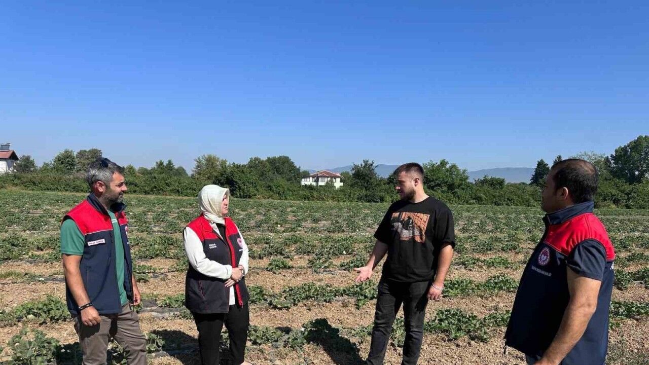 Düzce İl Tarım ve Orman Müdürü Esra Uzun, Koordinasyon ve Tarımsal Veriler Şube Müdürü Burak Durna ile Bitkisel Üretim ve Bitki Sağlığı Şube Müdürü Cem Özmen’in katılımıyla, Kirazlı Köyü’nde genç çiftçi Yusuf Şamil Aydın’ın üretim alanlarında incelemelerde bulundu. Üniversite öğrencisi olan genç çiftçi Yusuf Şamil Aydın’ın 25 dekarlık kavun, karpuz ve kabak üretim alanı yerinde değerlendirildi. Sürdürülebilir üretim yöntemleri ve yeni nesil tarım uygulamalarıyla dikkat çeken bu alan, kırsalda kalkınma ve tarımda gençlerin artan rolü açısından örnek bir model oluşturuyor.