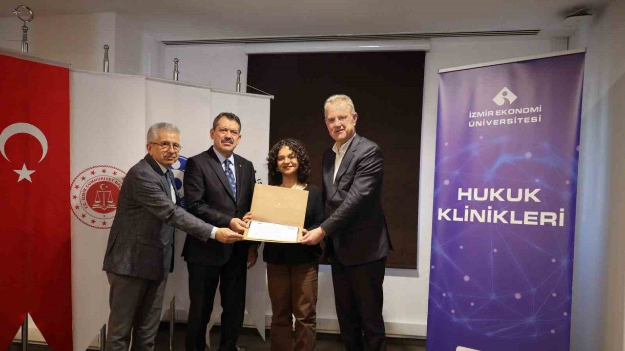 İEÜ Hukuk Fakültesi Dekanı Prof. Dr. Sevilay Uzunallı da sertifikalarını alan öğrencileri tebrik ederek, "Bu program, sadece Ege Bölgesi’nde bir ilk olmakla kalmadı; aynı zamanda hukuk eğitiminde teorinin pratiğe dönüştüğü örnek bir model oluşturdu. Öğrencilerimiz, gözlemleme ve gerçek vakalar üzerinden analiz yapma fırsatı elde etti. Ayrıca, mesleki gelişimleri açısından da son derece kıymetli bir deneyim kazandı. Bu dersin, genç hukukçularımızın adalet duygusunu, mesleki yetkinliklerini ve toplumsal sorumluluk bilincini daha da güçlendirdiğine inanıyorum" ifadelerini kullandı.