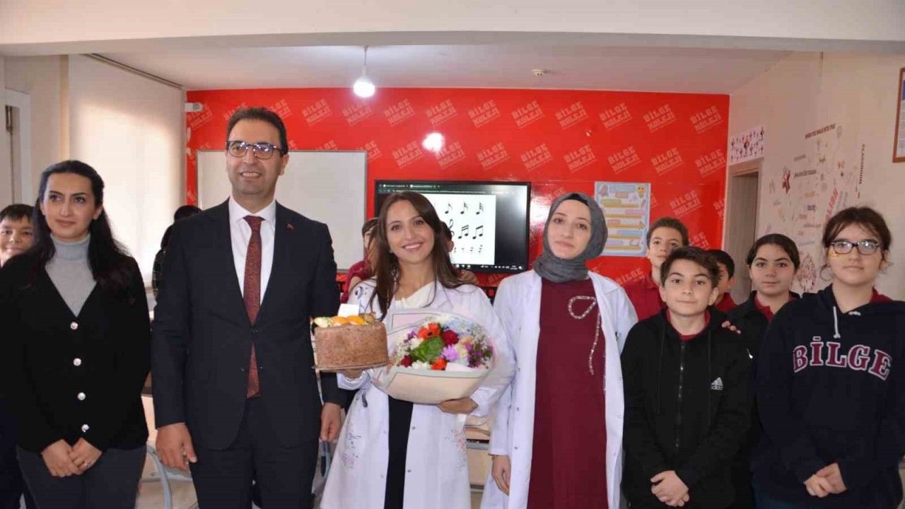 Cübbe töreninin ardından öğrencilerin ve öğretmenlerin katılımıyla Öğretmenler Günü’ne özel pasta kesimi yapıldı. Öğrenciler genç öğretmenlerine sürpriz olarak hazırladıkları çiçekleri takdim etti. Fotoğraflarda da görüldüğü üzere öğrenciler mutluluklarını alkışlarla, tebessümlerle ve samimi tebriklerle gösterirken, Hacer öğretmen ise hem heyecanlı hem de gururlu bir atmosfer yaşadı.