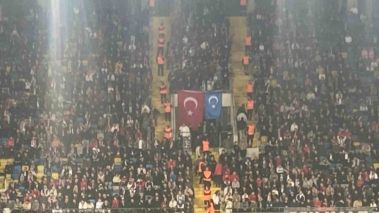 Gençlerbirliği taraftarları, RAMS Başakşehir müsabakasında maraton tribününe Doğu Türkistan bayrağı astı.