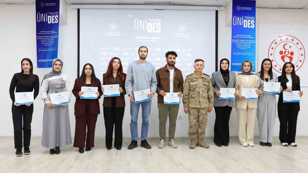 Bingöl’de, Gençlik ve Spor Bakanlığı Gençlik Hizmetleri Genel Müdürlüğü tarafından yürütülen Üniversite Öğrenci Toplulukları İş Birliği ve Destek Programı (UNİDES) kapsamında hayata geçirilen projelerde yer alan üniversite öğrencileri için sertifika töreni düzenlendi. Bingöl Gençlik ve Spor İl Müdürlüğü koordinasyonunda gerçekleştirilen törende, üniversite öğrenci topluluklarının aktif katkıları, akademisyenlerin rehberliği ve proje koordinatörlerinin özverisiyle yürütülen çalışmalarda görev alan öğrencilere sertifikaları takdim edildi. Törende sertifikalar; Bingöl Valisi Dr. Ahmet Hamdi Usta, Bingöl Belediye Başkanı Erdal Arıkan, İl Jandarma Komutanı Tuğgeneral Sabri Küyük ve kurum amirleri tarafından verildi.