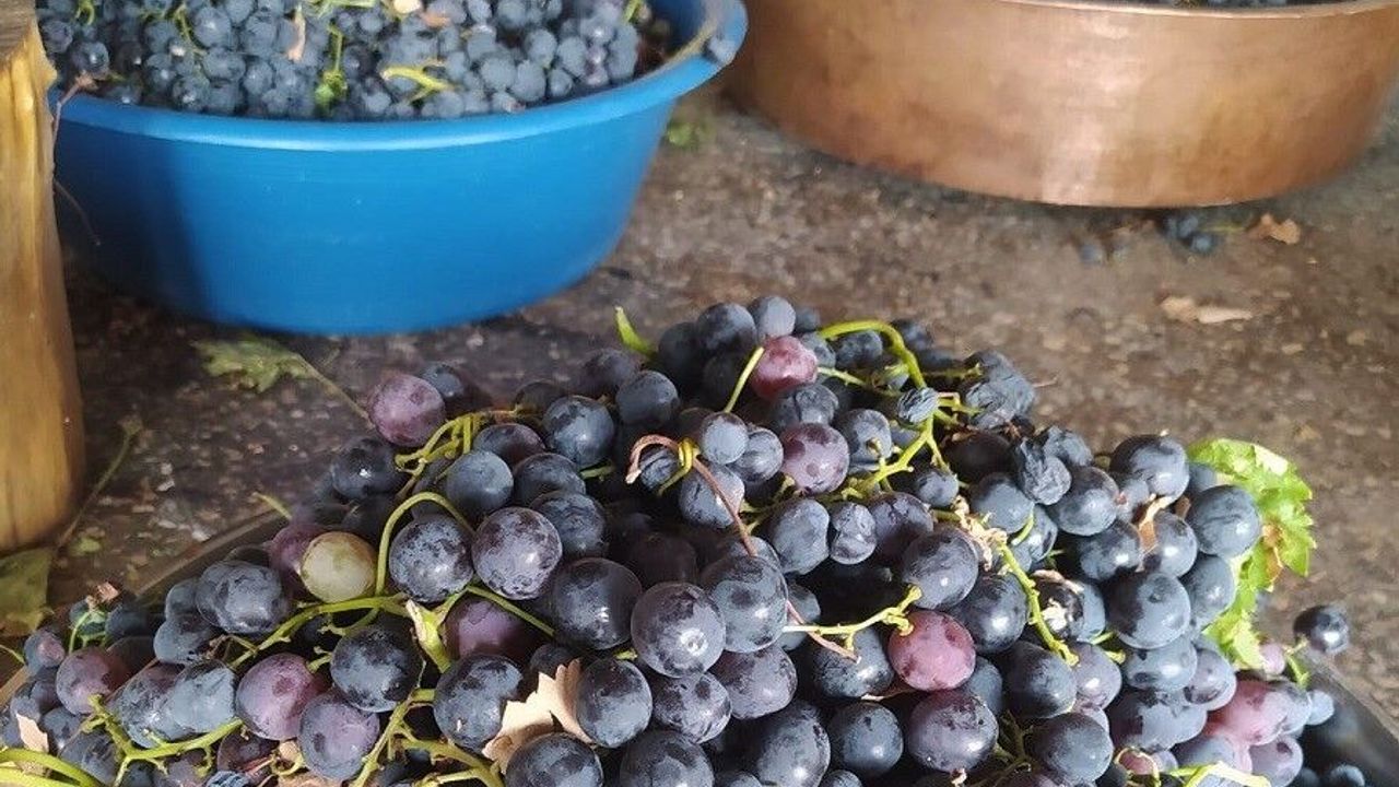 Batman’ın Gercüş ilçesinde hasadı başlayan siyah üzüm, geleneksel yöntemlerle sağlık açısından büyük faydaları olan pekmeze dönüştürülüyor.