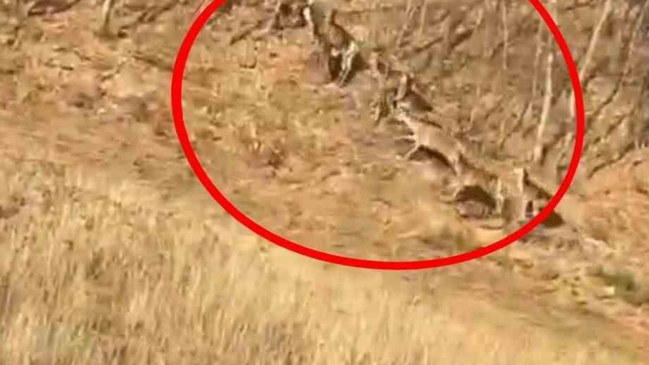 Kısa süre yol kenarında ilerleyen geyik sürüsü, daha sonra hızla yön değiştirerek yol kenarındaki ormanlık alana girdi. Ağaçlık alan içerisinde gözden kaybolan geyikler, izlerini kısa sürede kaybettirdi.