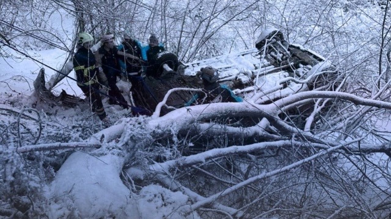 Giresun'da yoğun kar yağışı nedeniyle kontrolden çıkan otomobilin fındık bahçesine yuvarlanması sonucu meydana gelen kazada, 2'si çocuk 6 kişi yaralandı.