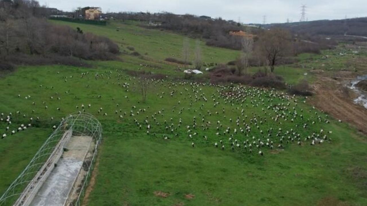 Arnavutköy Bolluca Mahallesi’nde mola veren yüzlerce leylek yeşillik araziye iniş yaptı. Leyleklerden dolayı yeşil arazi beyaza bürünürken kartpostallık anlar dron ile havadan görüntülendi. Görüntülerde yüzlerce leyleğin arazi üzerinde bulunduğu ve zaman zaman uçarak yer değiştirdiği görüldü.