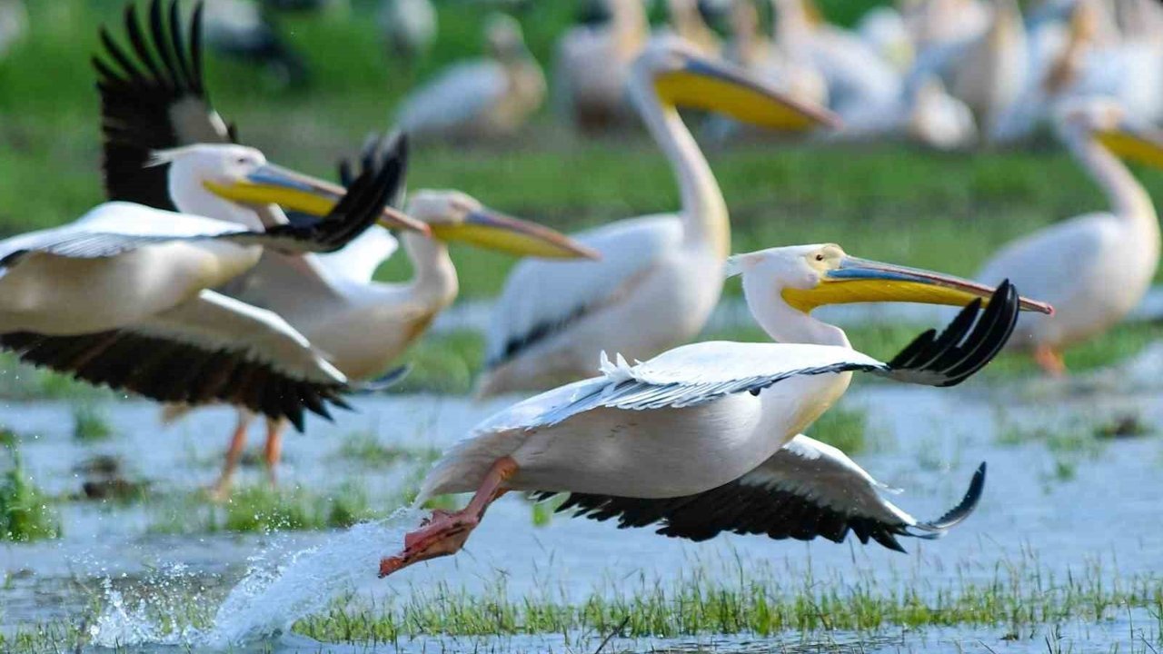 Bahar mevsiminin gelişiyle birlikte göç yolculuğuna çıkan pelikan sürüleri, her yıl olduğu gibi bu yıl da barajda mola veriyor. Doğaseverler ve fotoğraf tutkunları için güzel görüntüler oluşturan o anlar objektiflere böyle yansıdı.