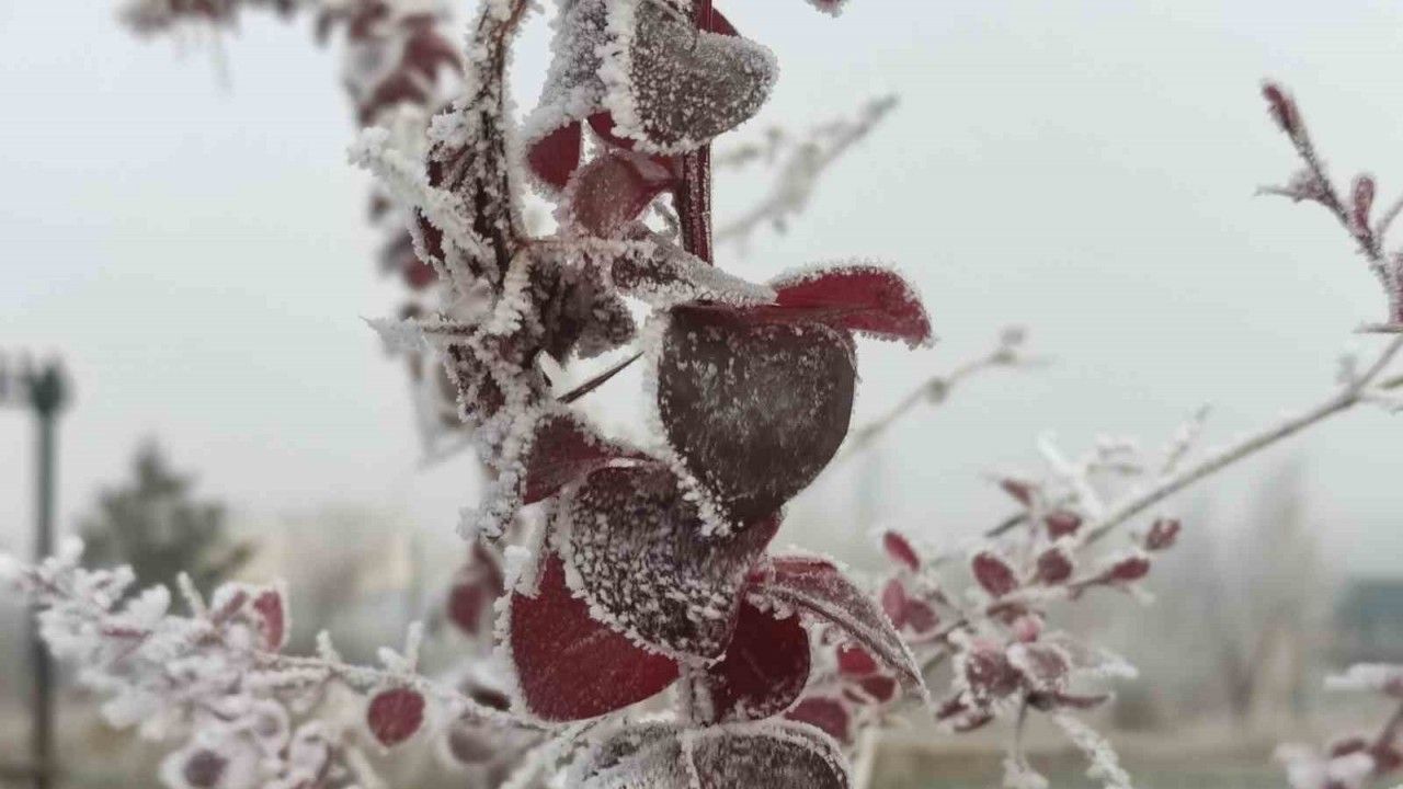 Ardahan’da hava sıcaklığının gece eksi 13 dereceye kadar düştüğü Göle ilçesinde bitki ve ağaçlar kırağı tuttu.
