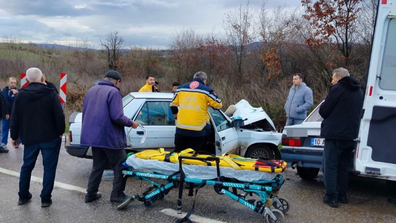Gönen ilçesine bağlı Kumköy Mahallesi'nde çift taraflı yaralanmalı ve maddi hasarlı trafik kazası meydana geldi. Edinilen bilgiye göre, E.E. (37) idaresindeki 16 SM 685 plakalı otomobil, Gönen istikametinden Yenice istikametine seyir halindeyken, Kumköy Kavşağı'nda F.A. (37) yönetimindeki 10 AJJ 344 plakalı otomobil ile karşılıklı olarak çarpıştı.