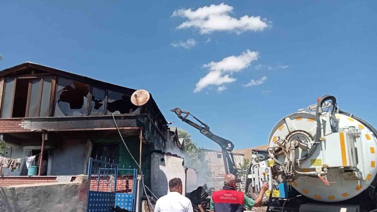 Gümüşhane’nin Köse ilçesi Salyazı köyü Hürriyet mahallesinde öğle saatlerinde Bilal Mutlu’ya ait 2 katlı evde sobada yemek pişirildiği sırada sıçrayan kıvılcımlar yangına neden oldu. Kısa sürede büyüyen alevlere ilk müdahaleyi, bölgede kanalizasyon çalışması yapan İl Özel İdaresine ait vidanjör ekibi yaptı. Köse Belediyesi itfaiye ekipleri ve vatandaşların da destek verdiği söndürme çalışmalarında yangın yaklaşık 1 saatte kontrol altına alındı. Olayda ölen ya da yaralanan olmazken, ev kullanılamaz hale geldi.