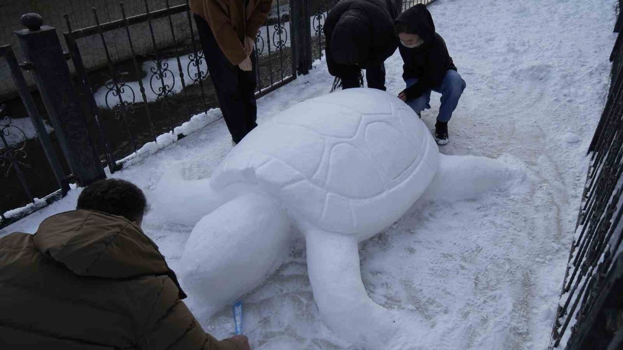 '4 saatlik çalışmayla kardan kaplumbağa yaptık'